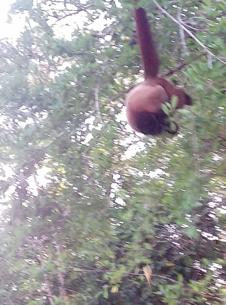 Die Affen sind schon etwas dressiert und wissen, wenn ein Boot vorbeikommt besteht Hoffnung auf Früchte von Touristen.Baumlodges gibt es hier auch.Das spiegelt sich unglaublich im Wasser.