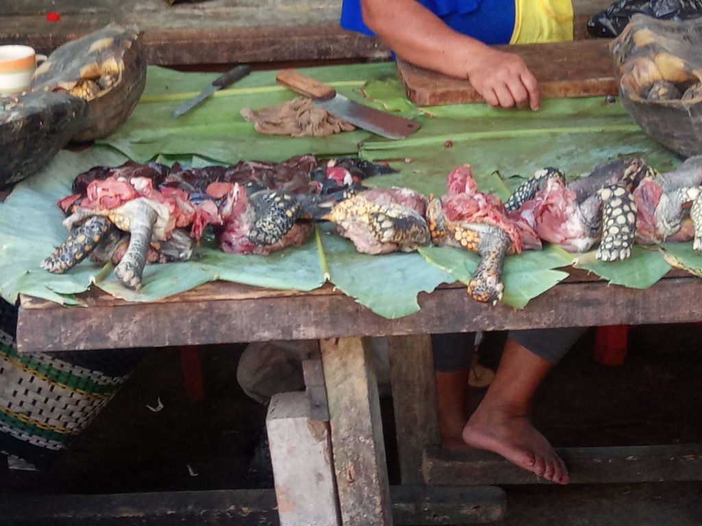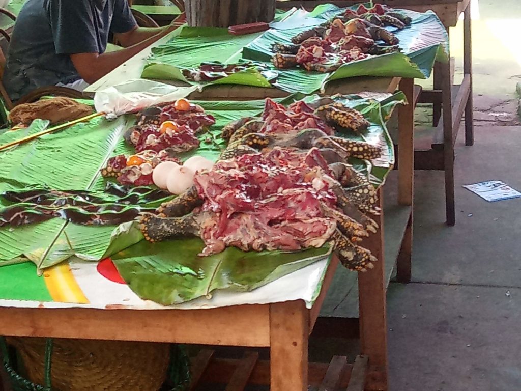 Der Belen Markt ist der zentrale Einkaufsmarkt, es gibt noch andere kleine Märkte in den Stadtteilen. Aber der Belen Markt ist riesig und wird ab 4 Uhr morgens mit Produkten aus dem Umland, von den Fischern und von Jägern und Sammlern aus dem Urwald beliefert. Selbst mein Guide musste bei einigen Früchten, Nüssen, Fischen ua. passen. Ab 12 Uhr ist dann aber auch Schluß. Auch besser, da es hier extrem heiß ist und die Luftfeuchtigkeit enorm ist. Nicht auszudenken, was passieren würde, wenn der Markt bis in die nachmittags- oder Abendstunden dauern würde. Ich denke dann würde einges der Ware wieder lebendig werden und durch den Markt wandern.