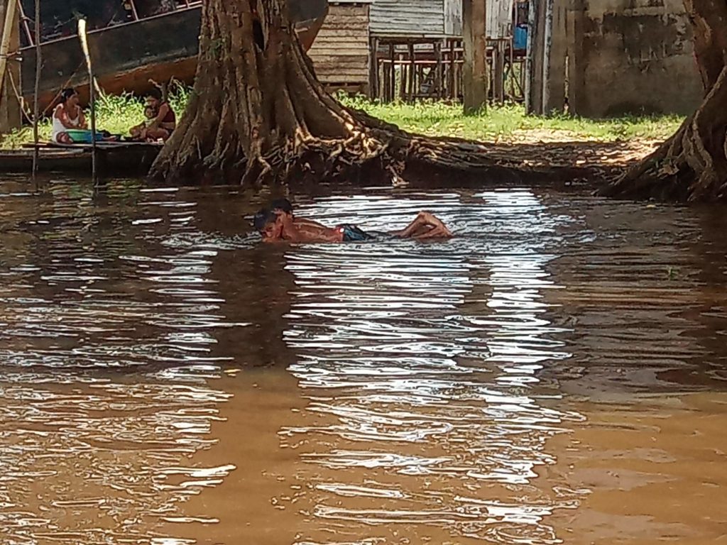Und erstaunlicherweise können die Leute hier nicht schwimmen. Sie können paddeln und sich an der Oberfläche halten, aber richtig schwimmen können die nicht. Obwohl sie am oder auf dem Fluß leben. Als ich im Freistil ein wenig rumgecruist bin wurde ich danach angeschaut wie ein Alien mit Außenbordmotor.