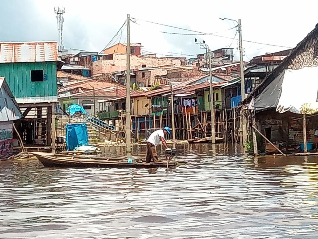 Auf dem Weg zur Bootsanlegestelle in Belen sind wir dann durch Gassen gekommen, die waren einfach unglaublich. Zweistöckige Betonhöhlen. lediglich mit Fentsteröffnungen und Türöffnungen nach vorne. Natürlich ohne Fenster und Türen, drinnen spärliche Möbel aus Sperrholz, gekocht wird auf Kohlegrill. Dreckig, unglaublich stinkend. Die Hölle. Ich habe schon einiges gesehen. Aber das waren die menschenunwürdigsten Behausungen, die ich je gesehen habe. Dagegen waren die Slums in der Dom Rep, die Barackensiedlung direkt an der Autobahn bei Port Luis auf Mauritius oder die Altstadt von Hanoi Kurorte. Die Stadtverwaltung schickt 6 mal im Jahr Trupps durch, die DDT versprühen. Hier gibt es alles, Gelbfieber, Malaria, Dengue Fieber. Zweistöckig sind die Behausungen, da in der Regenzeit der Pegel um ca. 2 Meter ansteigt und dann nach oben gewandert wird, die Stege sind auf den Fotos auch zu sehen.
