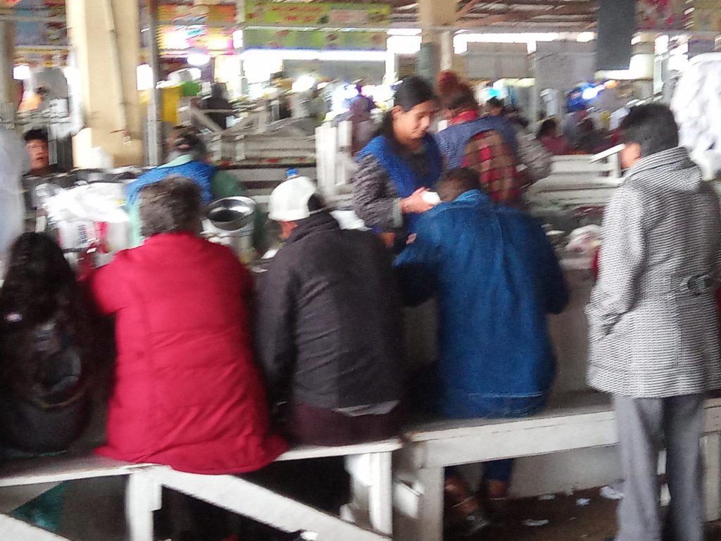 Am zentralen Platz – dem Plaza de Armas kann man durchschnittliche Pizza und durchschnittliches Bier für Mondpreise bezahlen. 300 Meter weiter im Mercado San Pedro dagegen sich mit Einheimischen in der Markthalle für wenig Geld Gemüsesuppe, Lomo Saltado und Pisco Sour gönnen. Ich rede hier von einer Differenz von dort 50 Soles und da 10 Soles. Und es schmeckt in der Markthalle um Längen besser.