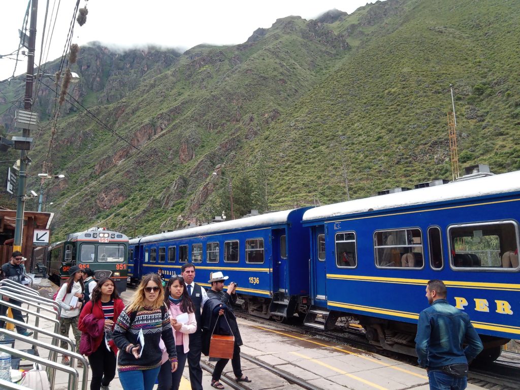 Mit den beiden Eisenbahnunternehmen wird man zunächts in einer ca. 2 stündigen Busfahrt nach Ollantayyambo gefahren und steigt erst dort in den Zug. Die Strecke ist sehr rumpelig und der Komfort ist nicht großartig. Es gab in meiner Zugklasse Inkrail/Voyager (150 Euro) auch eine Art light-Dinner. Das war etwas besser als Flugzeugmenü, aber nicht wirklich lecker oder erwähnenswert.