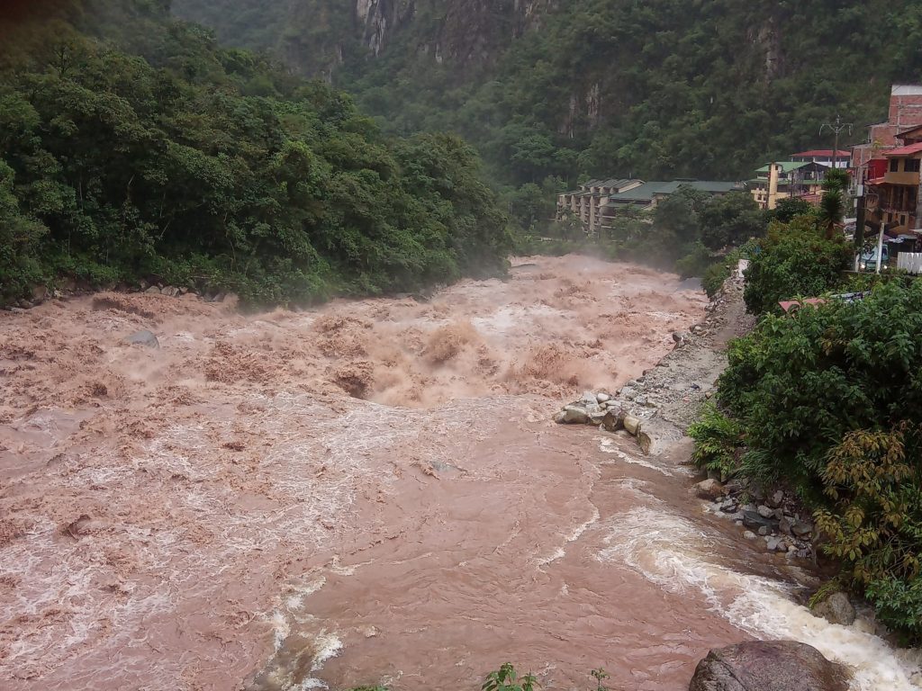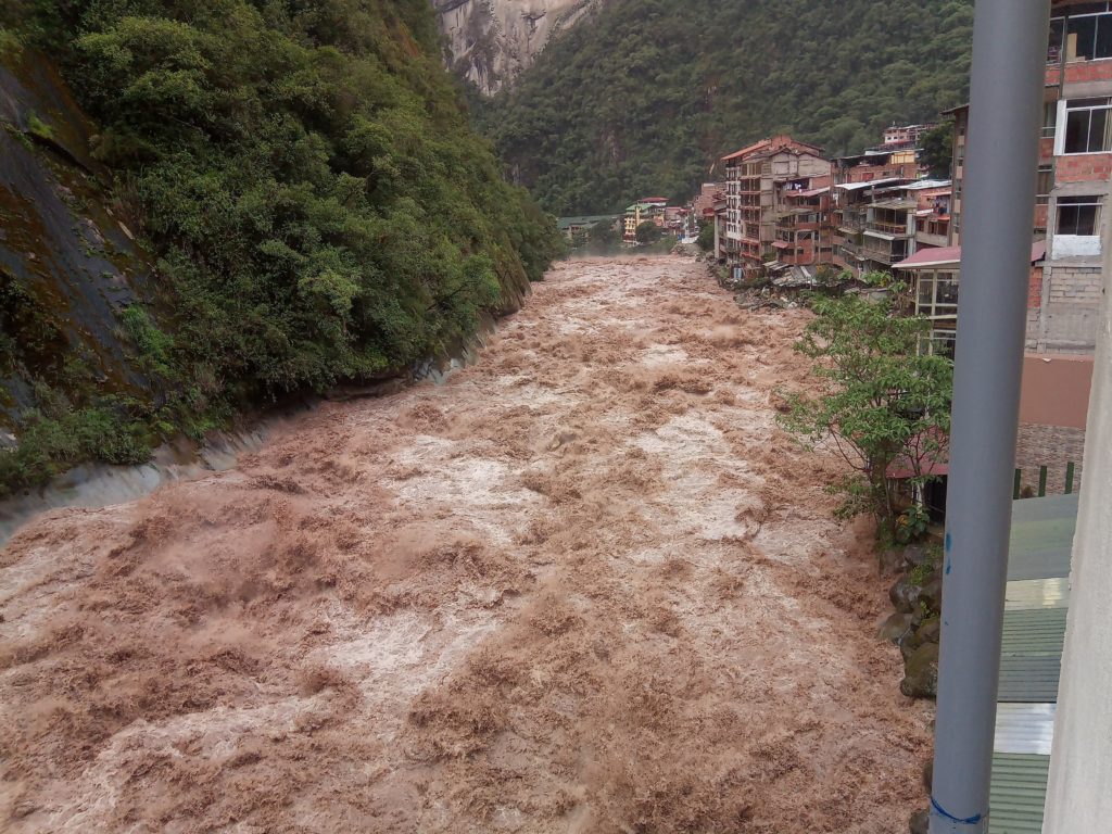 Nach ca. 1 Stunde und 40 Minuten kommt man dann in Aguas Calientes (oder auch Machu Picchu Pueblo gennant) an, 2040 Meter hoch. Und da steht ein Hotel und Hostel neben dem anderen, ein Restaurant und Bar neben dem anderen, ein Straßenverkäufer neben dem anderen. Die Preise bewegen sich auf Frankfurter Niveau. Februar ist zudem nicht unbedingt die beste Reisezeit. Es regnet häufig und dann auch lange und es kühlt ab bis auf 11-12 Grad.
