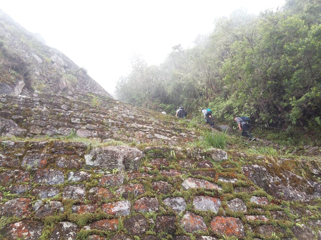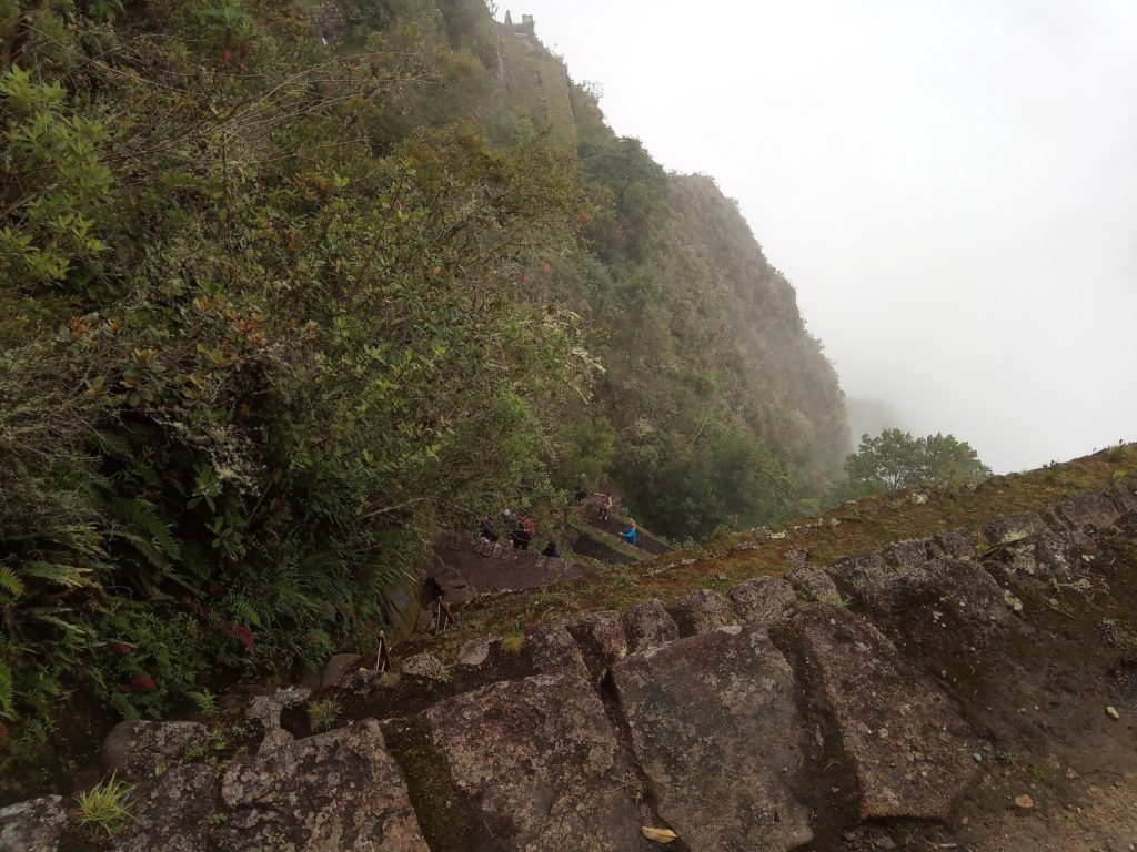 Das hieß dann erst mit dem Bus nach Machu Picchu, dann durch die Anlagen dort und dann 270 Meter hoch, durch Gebirgspfade, nichts von wegen Stufen oder ähnliches, mal auch wieder runter, mal mehr Bergsteigen als Wandern, in zwei Stunden, da die nächste Gruppe ab 10 Uhr startet und wenn man nicht rechtzeitig zurück ist, man sich aneinenander vorbeiquetschen muss, auf diesen Gebirgspfaden. 270 Meter, in zwei Stunden. Kaum zu glauben, aber mittlerweile überholen mich sogar schon 30jährige. Ich sollte wohl doch mal mehr Sport machen. Zudem hatte ich meine Jacke und Regenponcho auf einem Plateau abgelegt, und da die Rancher eindeutig sagte – One Way – bitte noch mal eine Ehrenrunde drehen……