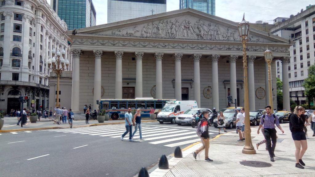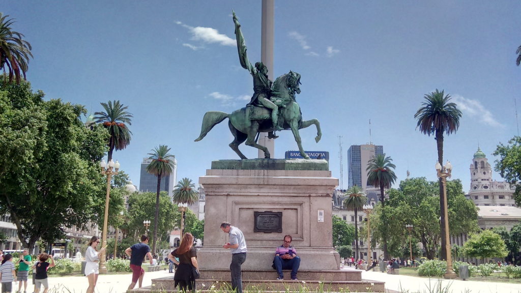 Der Plaza de Mayo ist der zentrale Platz in Buenos Aires, hier finden auch Demonstrationen statt und es gab Zeiten, da hat das Militär hier einfach mal 200 Leute platt gemacht. Ganz platt, per Luftangriff. Es befindet sich hier auch das Grab von Herrn San Martin. Eine Art Wandergeselle in Militaria, ein unruhiger Geist, der sich nicht richtig entscheiden konnte, ob er links oder rechts von den Anden bleiben soll. Das mit den Spaniern war ihm auch zu kompliziert, und er ist daher für die Unabhängigkeit Perus (zusammen mit Bolivar), Chiles und Argentiniens wesentlich mitverantwortlich. Darüber hinaus gibt es aber auch noch viele andere wirklich sehenswerte Gebäude und ich bin Dirk Gentleys Vorschlägen gefolgt, dass das Ziel eigentich egal ist, solange der Weg der richtige ist.