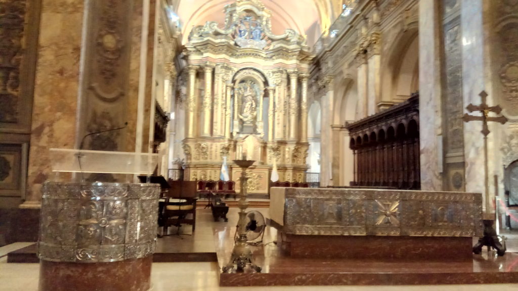 Cathedral in Buenos Aires. Kirche und Grabesstätte des Nationalhelden San Martin.Mal den Blick nach oben werfen, auch imposant.Die beiden Herren links und rechts sind keine Figuren. Vermutlich werden sie bei Schichtende mit der Sackkarre rausgefahren Jedem Normalsterblichen würde nach einer halben Stunde das Blut unterhalb der Kniekehlen stehen. Tatsächlich soll dies das Grab von San Martin sein. Ich denke er ist froh, wenn es Sonntag ist und keine Touristen kommen. Dann hat er mal wirklich Ruhe.Raffiniert diese Morlocks, hier versuchen sie es mit Leuchtreklame und der Verfälschung einer weltweit bekannten Kette für Baguettes. Respekt. Hat aber auch nicht geholfen. Drinne keine Morlocks.Keine Ahnung was das genau ist, es wirkt aber fremd. Momentan offenbar ein Parkhaus. Irgendwie mexikanisch. Nicht so bomabstisch wie alles drumherum. Irgendwie einzig. Ich konnte aber nicht herausfinden, was es damit auf sich hat.Mein Smartphone gibt das leider nicht her. Aber über alle Straßen habe ich 18 Spuren gezählt. Die Straßen in Buenos Aires sind richtig breit. Es soll sogar welche mit 40 Spuren geben.Idealerweise befindet sich die korrespondierende Gewerkschaft direkt gegenüber, auf der Staßenseite von der ich das Foto mache.Im Gegensatz zur Innenstadt von Rio de Janeiro gibt es hier sogar Nebenstraßen ohne viel Trubel. Ein Brasiliner würde sich vermutlich beschweren.Auch wenn ich es nicht beweisen kann. Es muss in meinem Pass einen Eintrag geben – finde die Deutsche Evangelische Gemeinde in Buenos Aires. Vermutlich mit unsichtbarer Tinte geschrieben.Bingo. Bitte meinen Preis rüberrecichen.Zahnstocher, beeilen, gleich wird die Ampel für die Autos grün. Hurry upDer Marineklub Ende des 19ten Jahrhunderts. Für Offiziere, denen ihre Ehefrauen noch nicht gezeigt haben, woher der Wind weht.Kennt doch jederSo ein schönes Gebäude und dann Starbucks. Fuck off.Ein Ort der Ruhe in Buenos Aires. Obwohl mitten in der Stadt gelegen. Man kommt dort rein und denkt man ist in einer anderen Welt. Sehr zu empfehlen.Hier kommen auch Suesse auf ihre Kosten. Spenden bitte an das Kalauerkonto des SWR