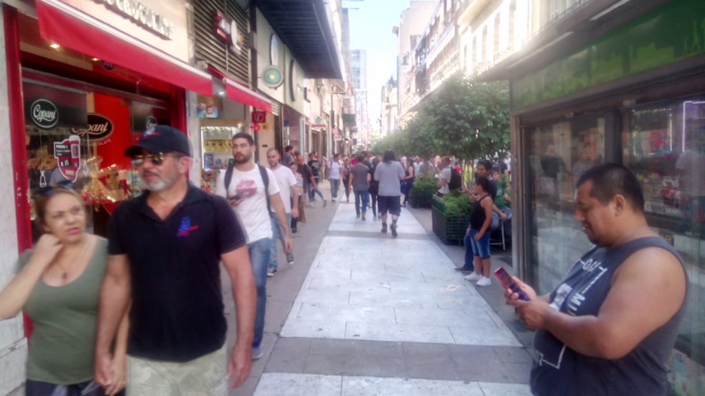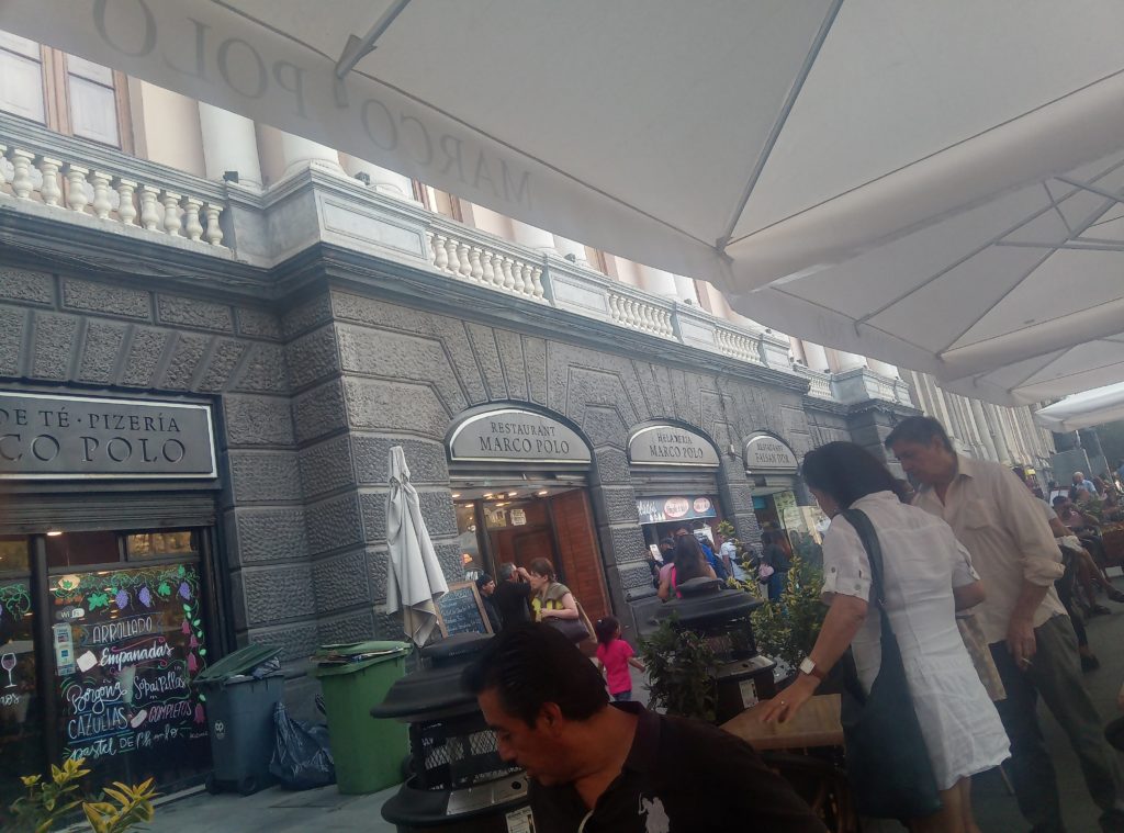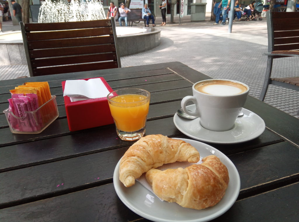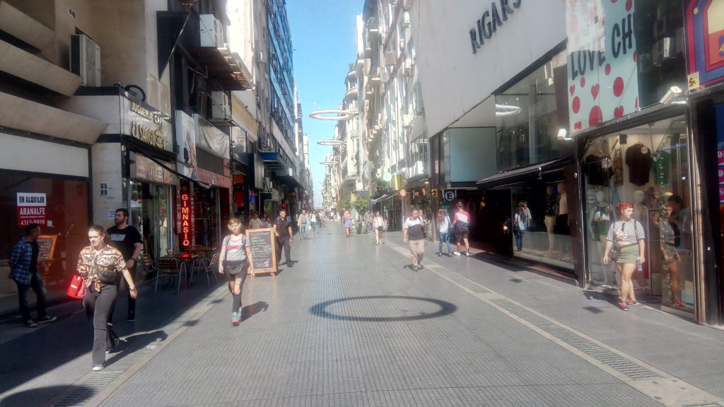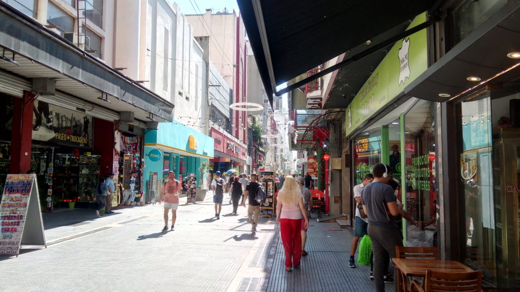 Morgens um 9 Uhr Fußgängerzone Mendoza. Das schreit nach Frühstück.Richtig chillig wird es zwischen 13 und 16 Uhr, dann gehen hier sogar in vielen Läden die Rollläden runter, Man liegt dann zwanglost auf einer Parkbank oder trifft sich mit Freunden zum Quatschen in der Bar oder im Cafe.Die Busse halten regelmäßig in der Fußgängerzone in Mendoza. Ich werde das morgen mal ausprobieren.Das nennt sich Desayunar. Frühstück, Und nein, das nennt sich nicht Croissant. Das sind Media de Lunas – Halbmonde. Für 180 Peso – inklusive Trinkgeld. Je nach Marvins Manipulation der Wechselkurse zwischen 2 und 3 €. Es gibt hier verblüffend viele Buchläden. Auf einer Strecke von 200 Metern habe ich 5 gezählt, Auch viele der kleinen Straßenkioske haben ein paar Bücher in der Auslage, meistens irgendwelche Klassiker, Jules Verne, Homers Odysee oder sogar Michael Foucault, den ich doch für etwas seht spinnert halte. Und ich habe in Bielefeld Soziologie studiert.Fleisch vom Gringo gibt es auch. Weiß Donald Trump schon davon?Vermultlich ein gutes Angebot.Meine unglaubliche Ausstrahlung wirkt in Mendoza besonders. Ich bekomme verwirrte, ratlose, „was zur Hölle“ Blicke zugeworfen. Ich hoffe es liegt an meiner Ausstrahlung und nicht an dem T-Shirt, mit dem ich hier durch die Gegend wandere, bis die nette Dame aus der Wäscherei mit meinem Konglomerat durch ist.Etwas gewöhnungsbedürftig. Man schmeißt kein Toilettenpapier in die Schüssel, sondern in einen separaten Eimer, der in den Hausmüll entsorgt wird und/oder hat Bidet und/oder eine Brause. Sowieso hygenischer hat mit einer vom Lattentreff erzählt.Jedem, der ein wenig offenen Geistes und Herzens und der das Backpacker Alter hinter sich hat, kann ich nur empfehlen nicht in ein Hotel zu gehen. Buchungsportale wie Booking.com bieten Angebote von lokalen Vermietern, bei denen man mit den Einheimischen in Kontakt kommt und im Vergleich zu den üblichen 08/15 Hotelzimmern Stil und Ambiente bekommt. Und einen Kühlschrank, Balkon und Kaffeemaschine und Küche (falls man eine Küche braucht). Für das Apartment in Mendoza habe ich für 7 Übernachtungen 210€ bezahlt. Das etwas düstere Image liegt an dem Deckenlicht, das ist wesentlich freundlicher in echt.Ein Hemd, eine Jeans, 8 T-Shirt, 7 Boxxer, 7 Paar Socken – für 250 Peso – Marvin, korriegiere mich. Irgend etwas zwischen 3-4€. Gewaschen, gebügelt und von der netten Dame in der Wäscherei mit kritischem Blick übergeben.Ich vermute mal, das liegt an meiner Sockenauswahl. Vermutlich bin ich im Viertel schon als Diavolo de calcetines bekannt. :o(