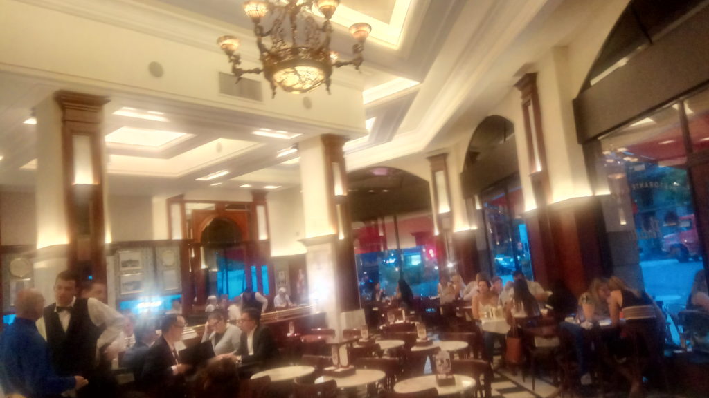 Und dann war es endlich soweit – mein Steak. Im Rückblick betrachtet muss ich sagen dieses In-Viertel Palermo ist eine Marketingaktion, bei der man ausländischen In-Gästen durchschnittliche Qualität und schlechten Service für drastisch überhöhte Preise andreht. Für mein fantastisches Steak, mit einem hervorragenden Brandy danach habe ich halb soviel bezahlt, wie ich es hätte in Palermo, wenn ich dort überhaupt bedient worden wäre. Und das direkt am Plaza de Mayo. Ohne ein Wort Englisch reden zu müssen.