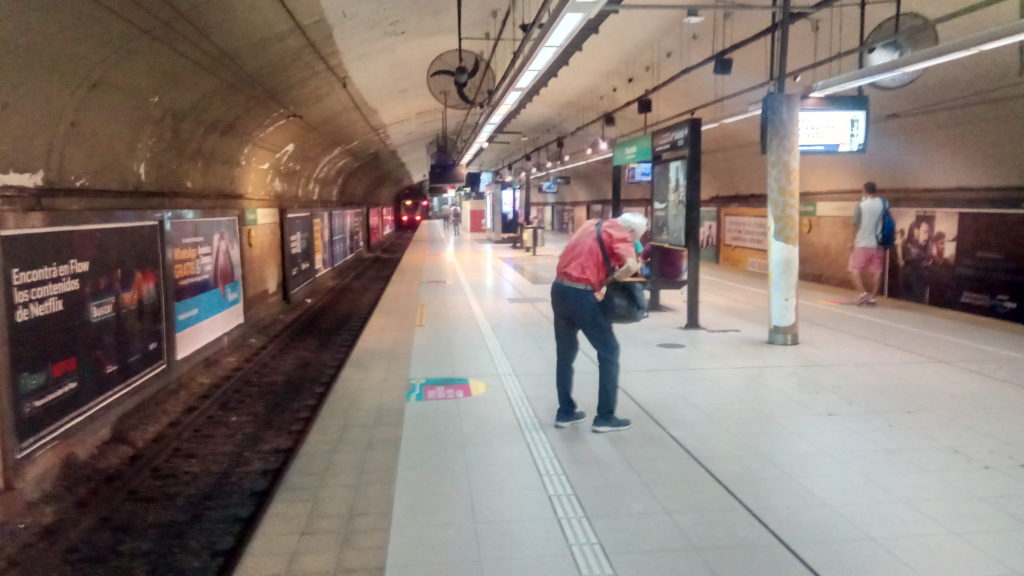 Gefahren bin ich von Plaza Italia zum Plaza de Mayo. Ungefähr 10 Stationen, sehr entspannt. Ich hatte die Karte mit 120 Peso aufgeladen. Als ich den Stand bei der Rückfahrt geprüft habe waren es 120,01 Peso. Inflation? Fotoroboter aus Lissabon? Who knows?