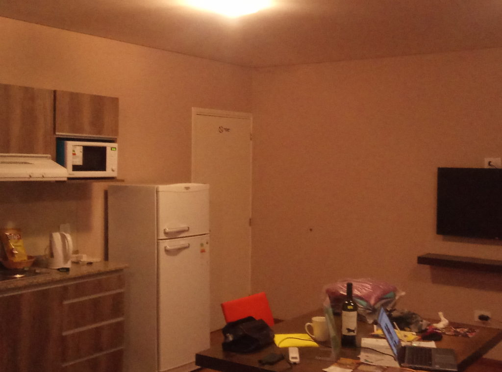Mittlerweile bin ich in Mendoza dann doch angekommen. Gestern gegen 23:30, empfangen von einer sehr netten Dame, etwas älteren Jahrgangs, die mir alles mögliche erklärt hat, auf spanisch. Ein paar Sachen konnte ich verstehen, etwa, dass es drei Schlüssel gibt, Apartment, Aussentür, Gittertür zur Straße. Air Con, Kühlschrank. Der Rest kam mir einfach nur Spanisch vor. Da es aber 23:30 war, habe ich zu allem erst einmal Ja -Si gesagt. Ich hoffe, ich bin dadurch nicht unverhofft zu mehreren Hektar Land im Umkreis von Mendoza gekommen.
