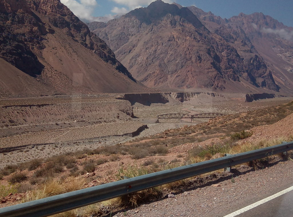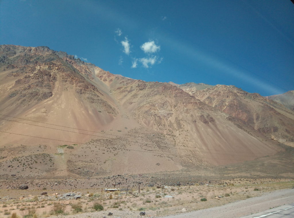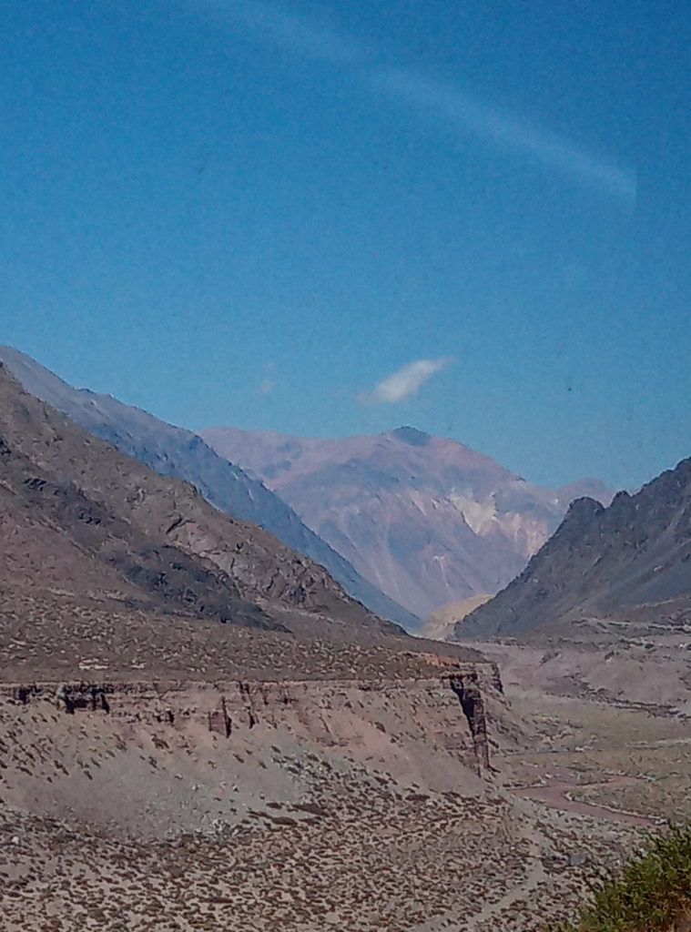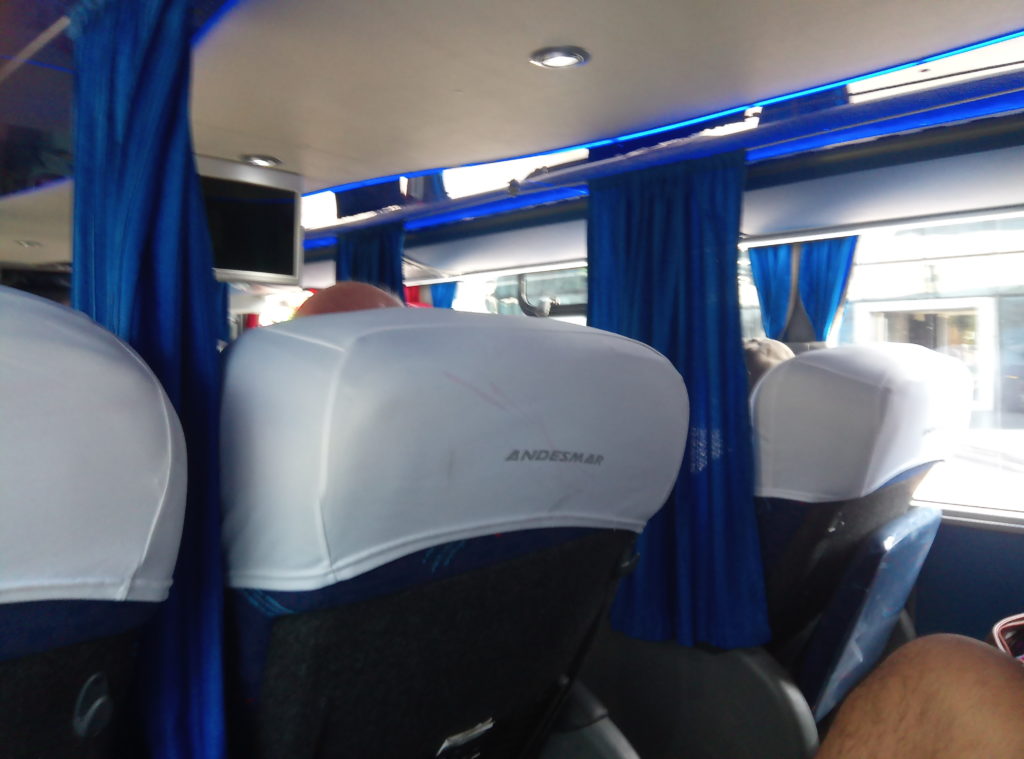 Heute morgen war es dann soweit Argentinien und Mendoza zu verlassen. Ich kann Argentinien sehr empfehlen, hat mir sehr gut gefallen. Fröhliche, offene und herzliche Leute, gutes Essen, hervorragender Wein und beeindruckende Landschaften. Elio, der Vermieter des Apartement, ein netter Typ, in etwa meines Alters, der mir viele gute Tips für Mendoza gegeben hat und der insgesamt drei Jobs hat, um über die Runden zu kommen, hat mich freundlicherweise zum Busbahnhof gefahren. Natürlich zu früh, gegen 8 Uhr, Abfahrt war erst gegen 9 Uhr. Die Busse haben Abfahrtsgleise, dort gibt man direkt am Bus sein Gepäck ab und bekommt dafür einen Bon, mit Nummer. Die Busses sind sehr komfortabel, insbesondere in der Cama/Full Bed Klasse, die Semi Cama/Half Bed Klasse entspricht in etwa dem, was man von Flixbus und Co. kennt.