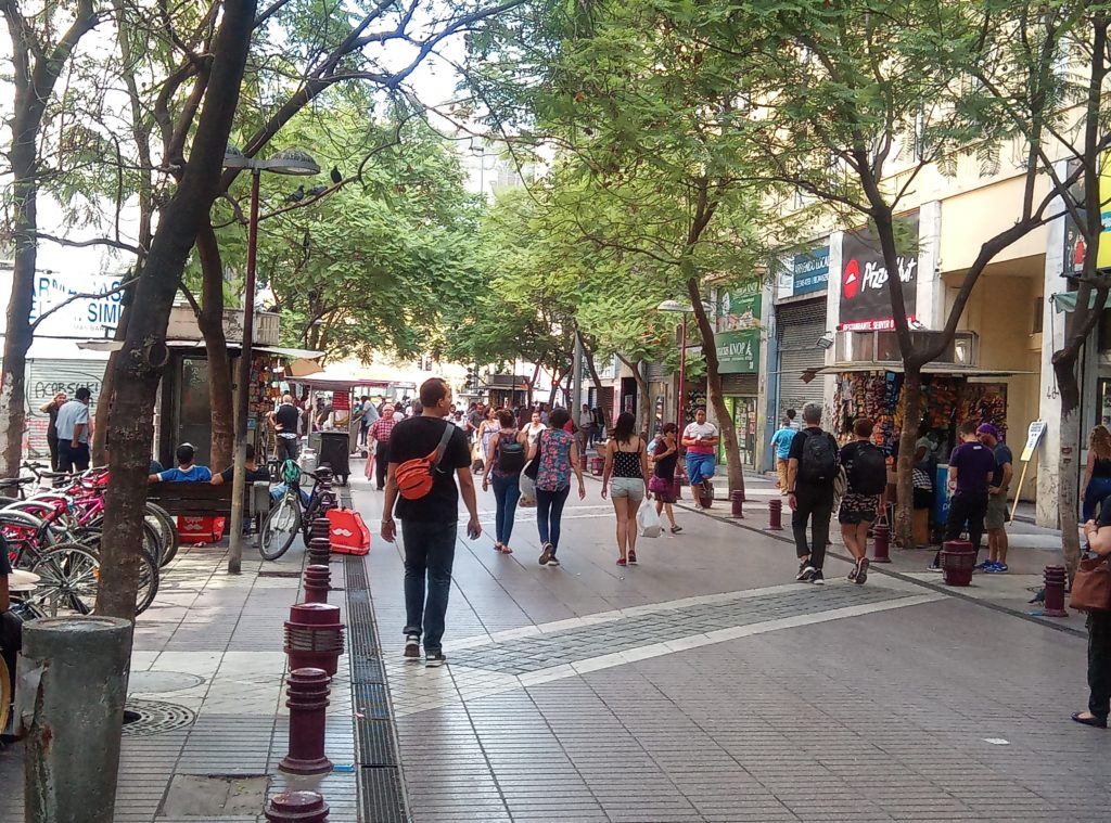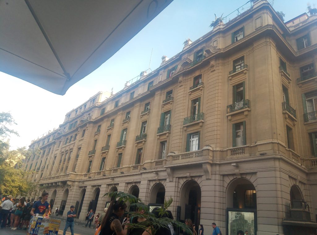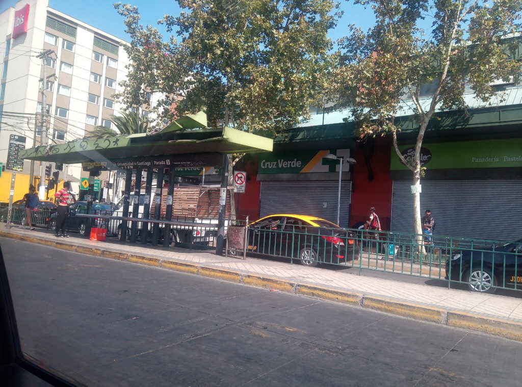 Busbahnhof Mendoza, meine Buslinie Andesmar – Online Buchung ohne Probleme, einfach E-Ticket beim Einsteigen zeigenCama/Full Bed KlasseKleine Verköstigungen für zwischendurch. Dazu gibt es dann heißes Wasser oder ColaEs gibt da einen kleinen Grünstreifen, bei einer Stadt die Upsallata heißt, ansonsten durchweg Steine,Sträucher und Berge.Grenzübergang Chile Los Libertadores. Man darf im übrigen weder Frücjhte noch Gemüse von Argentinien nach Chile mitnehmen. Hat mich 1 Orange zu 10 Peso und 2 Pfirsische zu 50 Peso gekostet. Ich werde es überleben, es sei denn ich sterbe jetzt an Vitaminmangel, was eher unwahrscheinlich ist..Die chilenische Variante der holländischen BruckgeldkassiererDie Vegetation in den Andenausläufern auf chilenischer Seite ist deutlich anders, als auf der argentinischen. Viel sandiger, und viel mehr Kakteen.Wirkt irgendwie afrikanisch.Angekommen in Chile Busbahnhof, Geld wechseln ohne Probleme am Busbahnof möglich. Dann die Qual der Wahl, welches Taxi nehmen wir denn?Ein paar StraßeneindrückeEingecheckt ins Apartment und mal durch die naheliegenden Straßen spaziert.Fußgängerzone Santiago de ChileUniversität Santiage de Chile, mitten in der StadtDiese Form des Grills ist mir jetzt doch neu. Sah aber lecker aus.Diese Kneipe hatte mir mein Vermieter empfohlen, wenn ich gutes chilenisches Bier trinken möchte. Hieß Guzmann oder so. Das Bier, nicht die KneipeWar eine Empfehlung der Bedienung. Absolut nicht mein Geschmack. Fleisch mit Zwiebeln in einer penetrant süßlichen Tunke, mit labrigen Fladen eingemauert. Bäääh.Straßenstände hat es hier auch ohne Ende, Wasser, Getränke, Fleisch frisch vom Einkaufswagengrill, Spielzeug, alles möglicheEin paar schöne Häuser hat es hier.