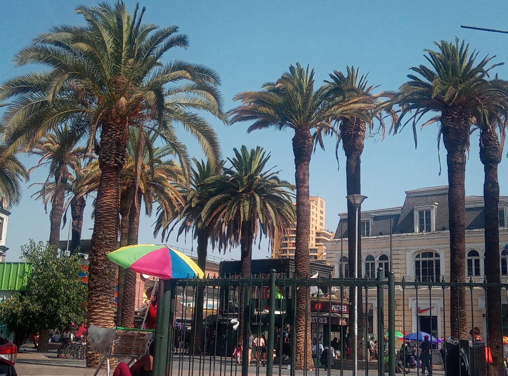 Eine meiner Spanischlehrerinnen in Bad Cannstatt ist aus Chile, ihr Name ist Bea, und sie hat mir empfohlen, wenn ich Märkte mag, soll ich mal bei Bio Bio vorbeischauen. Das ist von meinem Apartment in der Avenida San Francisco im Barrio Paris-Londres ungefähr 4 Kilometer nur die Straße immer runter. Daher habe ich mir gedacht, ein ausgiebiger Morgenspaziergang, irgendwo unterwegs frühstücken und mir dem Markt anschauen (Und ja, Bea, ich passe auch meine Wertsachen auf, peligrosso und so).