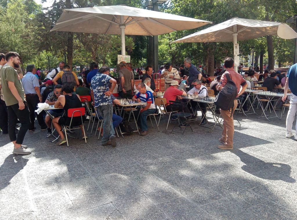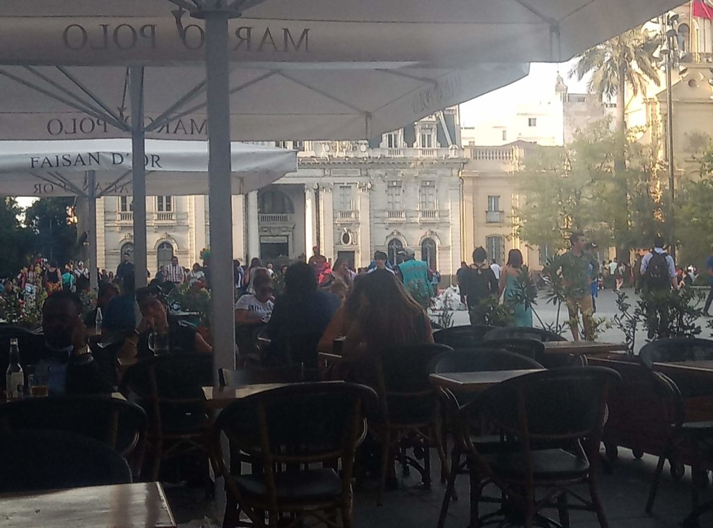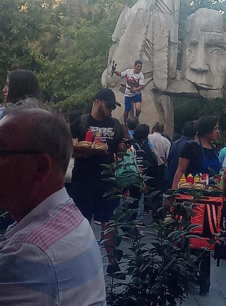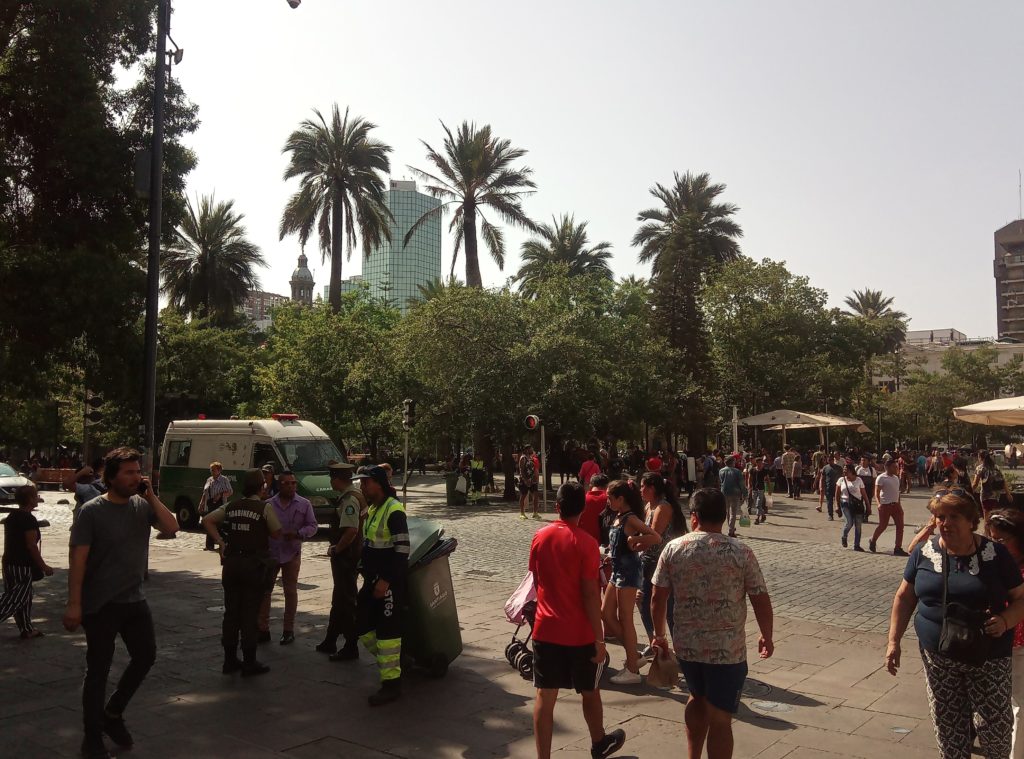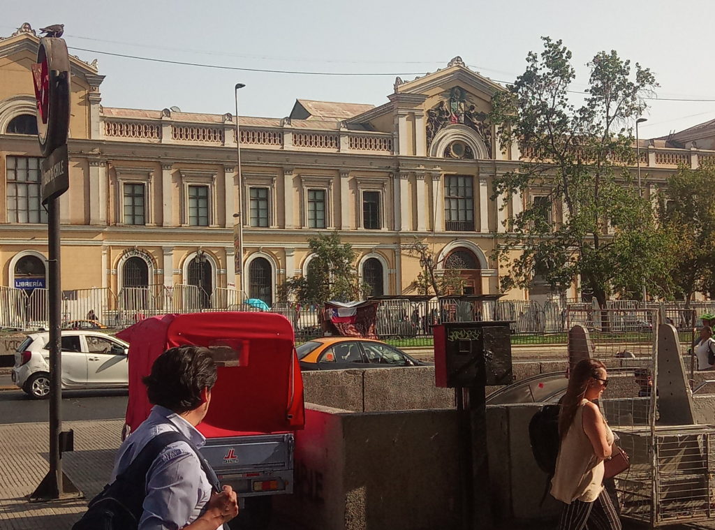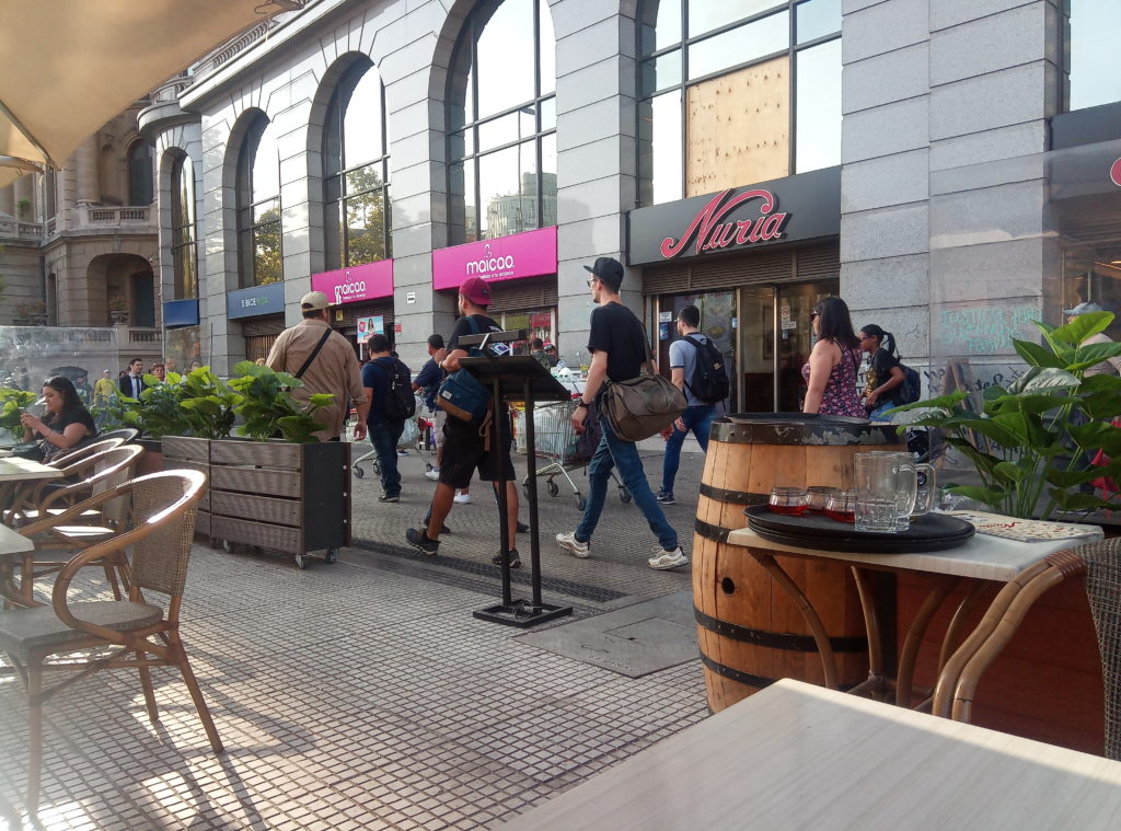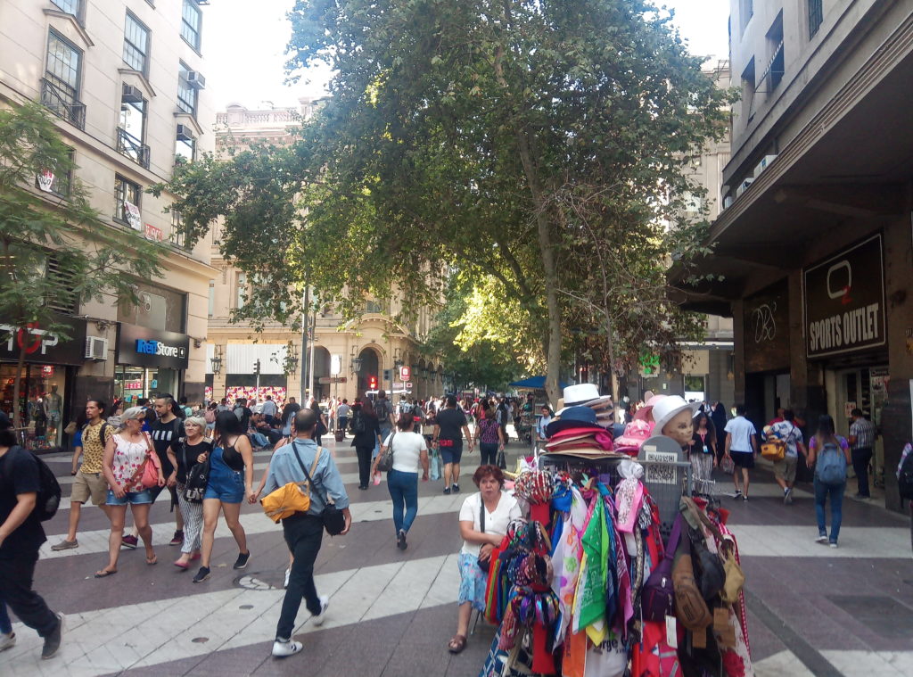 Start war am Staatssitz. Plaza de ConstitucionDer unglückliche erste sozialistische Präsident Allende. Totgebombt von den eigenen Militärs im obigen Präsidentenpalast mit freundlichem Ratschlag und Unterstützung der CIA.Mein Güte, geh weg. Ich will ein Foto machen.Wallstreet Santiago de ChileEin Lokal, das es sich auf die Fahnen geschrieben hat tradtionelle Küche zu bewahren.Eine Offenbarung. Es gibt tatsächlich leckeres Essen in Chile. Die Zusammenstellung aus selbstgemachter Mayonaise, Schweinefleisch und Zwielbeln war einfach lecker.Orgnisierter Schuhpuztshop. Sehr stark frequeuntiert.Schneider und Schilling. Deutscher Einfluss in ChileHot Dog Allee am Plaza de Armas. Heißen hier irgendiwe Completos. Die populärste Variante ist nach den italienischen Landesfarben benannt. Mayoniase, Avocado, KetchupDas hinter dem LKW ist das Postamt, ca. 150 Jahre altShowroom der Hot Dog AlleeDa ich gestern schon auf dem Platz war, mal ein kurzer Abstecher in die Kathedrale. Der Show Room.Hier sollte man ruhig sein. Seitenteil. Hier wird tatsächlich gebetet.Putztag am Plaza del ArmasEine endemische Art in Chile der Palme, ca 350 Jahre alt.In einer der Nebenstraßen des Plaza de Armas gibt es Esoterikbuden. Hier kann man sich die Zukunft voraussagen lassen. Ganz offiziell und besteuert. Wers braucht…………Fischmarkt Santiago de ChileAlle möglichen Arten von Muscheln, auch solche die man definitiv in Europa nicht kennt. Mehr oder weniger frisch aus dem pazifischen Ozean.Keine Ahnung woher das Blau kommt. Marvin? Spielst Du wieder?Die Viecher sind ca. 1 Meter lang. Eine Art Aal.Showroom in der Fischhalle.Metro in Santiago. Ähnliches System wie in Buenos Aires und Rio. Man organisiert eine Karte, lädt diese mit Guthaben auf. legt diese auf ein Lesegerät am Drehkreuz und fäht los. Der Preis ist unabhängig von der Länge. Eine Station oder Zehn. Immer derselbe Preis.In der Metro ist offiziell musizieren verboten. Wird aber doch manchmal gemacht. Offiziell ist nur hier das misizieren erlaubt.Meine Reisebegleitung. Sehr sympathisch.Vega Central Markt in Santigao de ChileCat Content. Davon gab es hier viele. Das Rätsel ist gelöst.Aus dem schwarrzen Mais wird ein Getrünk gemacht. Mal sehen, ob ich das irgendwo bekommen kann.Laut Nikolas der beste Kaffee in Santiago de Chile.Maniok.Beeren gibt es auch und die sind sehr lecker.Einer der Flüße rund um die Stadt mit Sedimenten aus den Anden. Es gibt noch einen anderen, aus dem das Trinkwasser gewonnen wird. Hier gab es eine kleine Konfrontation mit einem Obdachlosen, der offenbar der Meinung war, er müsste Geld bekommen für Fotos, die niemand von ihm gemacht hat.Der laut Nikolas europäischte Teil Santiago de Chiles. Nette Bar, Kaum war Nikolas weg, wurde man nur noch mit dem Arsch angeschaut.