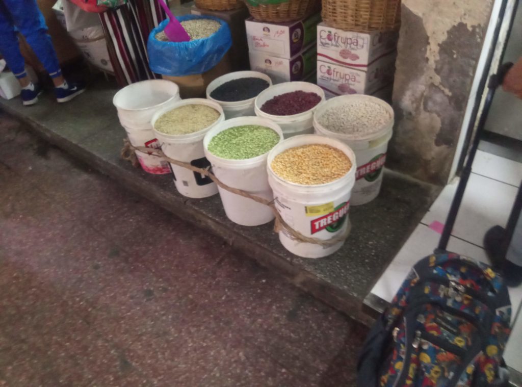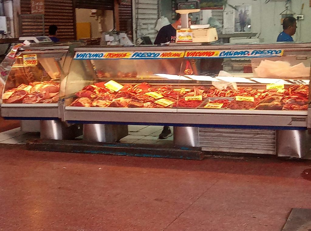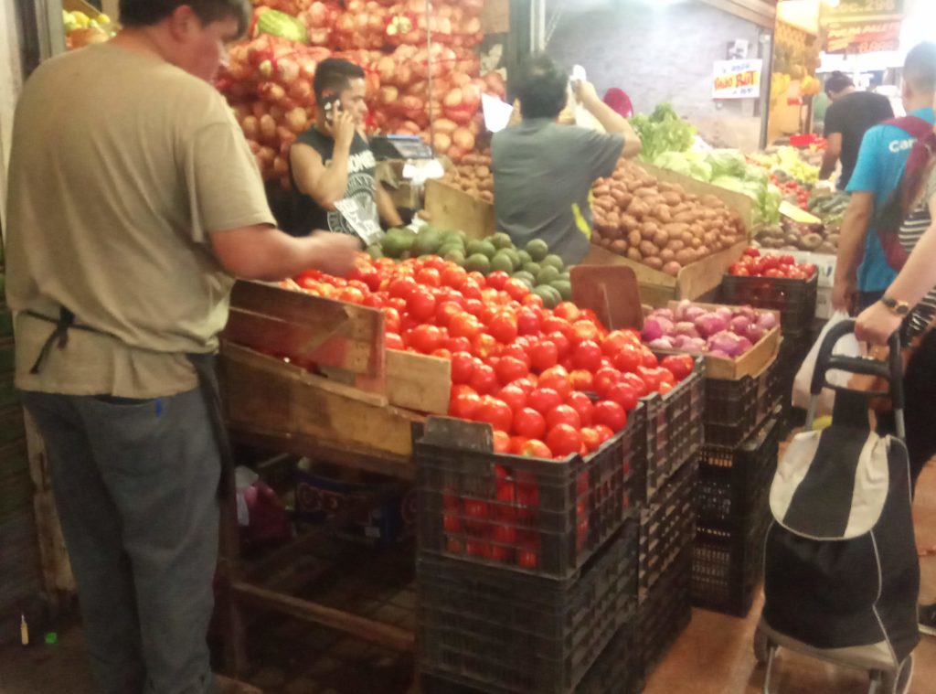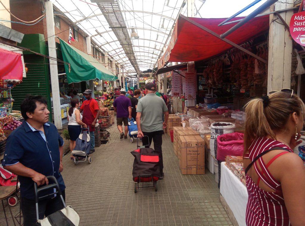 Leider gibt es hier ausserhalb der direkten Innenstadtgebiete die netten kleinen Cafes aus Argentinien nicht, bei denen man gemütlich draussen sitzen kann und ich meinem zweiten Vornamen Desayunar gerecht werden kann. Daher war ich etwas ausgehungert, als ich gegen 10 Uhr dort ankam. Dann ist dort auch noch weitgehend tote Hose. Erst gegen 11 machen die ersten Buden auf und es belebt sich. Bio Bio ist eigentlich kein einzelner Markt, sondern mehrere Hallen in den wahlweise mal Klamotten angeboten werden, mal Elektronikartikel, dann wieder Möbel oder Friseure und Schönheitssalons ihre Dienste anbieten. In der Mitte gibt es dann aber einen sehr sehenswerten Lebensmittelmarkt. Der ist für mitteleuropäische Augen schon sehr exotisch.