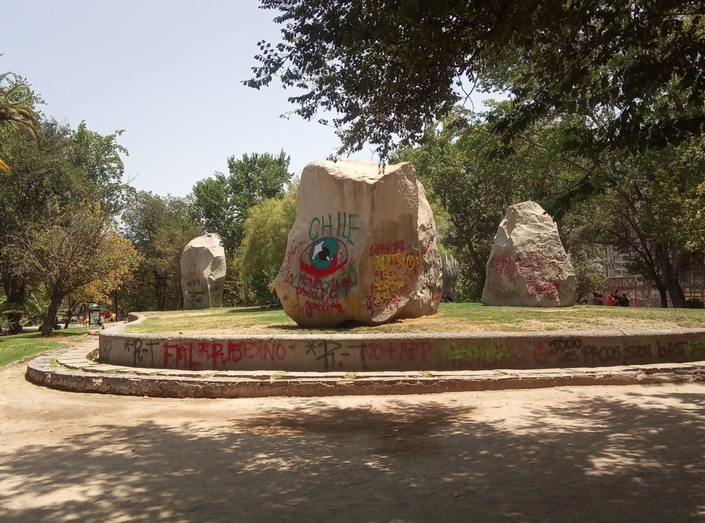 Mein erstes Lama. Ein echtes Lama, es gibt auch Partner/Unterarten.Schwach duftende Blüten auf dem weg nach ValparaisoKurzer Zwischenstop für einen Snack. So kleine Andachststätten gibt es hier überall an den Straßen und HäusernVina del Mar. Die Touristenhochburg in Chile für EinheimischeEin paar schöne alte Häuser gibt es hier. Die Stadt ist noch relativ jung. Sie wurde gegen 1910 von einer reichen Familie aus Spanien gegründet, die im Weinbusiness tätig ist. Daher auch der Name Vina del Mar.Geklaut von den Osterinseln, der ist bestimmt verdammt einsam hier auf dem Festland.Eine Gartenskulptur aus Pflanzen,Unser Tourguide Michelle in vollem Einsatz, mit dabei überwiegend Amerikaner, eine Chinesin, ein Inder und El AlemanPrähistorischer Wasserspeicher.Die Blumenuhr, die jeder mindestens einmal fotografiert haben muss, damit bewiesen ist, dass man in Vina del Mar war.Touristengimmick. Filmfiguren, die für ein Foto rund um Blumenuhr herumlungern. Ich möchte nicht wissen, wie heiß es in diesen Kostümen ist. Mir läuft bei 35 Grad auch so schon das Wasser herunter.Fischmarkt in Valpariso. Möwen, Möwen und noch mehr Möwen.Der Fang ist jetzt wirklich frisch.Meine beiden Kumpels von der Food and Markets Tour von gestern sind auch wieder dabei. Klein ist die Welt.Strandleben auf chilenisch.Ausrüstung für den Leinenfang. Ranjid, geh gefälligst aus dem Bild!Der Schutzpatron der Fischer.Leider nicht so gut zu erkennen, Aber das unter der Brücke sind Seelöwen.Das war richtig beeindruckend, die Grafitti, die es in den kleinen Gassen von Valparaiso zu sehen gibt ist wirklich gut und schön.Mein Liebling Polar, die Kunstwerke sind alle signiert.Valparaiso ist auch ein beliebter Ausflugsort für Kreuzfahrtschiffe.Das sind Darstellungen die die Historie eines chilenischen Eingeborenstamms dokumentieren. Die etwas wir Zirkus anmutenden Köpfe sind aus Walknochen hergestellt worden. Die Bemalung ist auch von dort.Nur Museum – altes Cable Car GetriebeAuch lustig, die JungsBlick über ValparaisoIn betrieb befindliche Cable Car Maschine. Dauert nicht lange. 5 Minuten und man ist unten oder oben. Und nur 100 chilenische Peso teuer.Ah, endlich Essen, Seafood, sehr lecker aber auch teuer.Mein dritter Vorname ist ab jetzt Nachtisch.2 Jungs aus Washinghton DC, ein Paar aus North-Carolina und Ranjid, der in Blockchain macht und mal einen Tag Pause braucht.Dann noch einmal eine Bodega. Die Weinprobe war verglichen mit Argentinien eher lieblos. Und ich muss sagen, mir schmeckt der argentinische Wein auch besser.Das Ambiente war aber schön.Unser kleine Faschingstruppe.Und zurück in Santiago de Chile noch ein bisschen herumlaufen.Das war irgendwie so eine Art Comdey. Mein Spanisch ist leider nicht ausreichend gewesen, um die Witze zu verstehen. Mitten auf dem zentralen Platz, Samstag gegen 21 Uhr.Zeit fürs Bett.