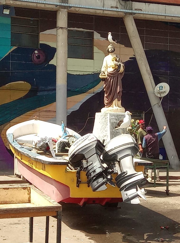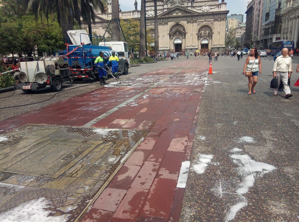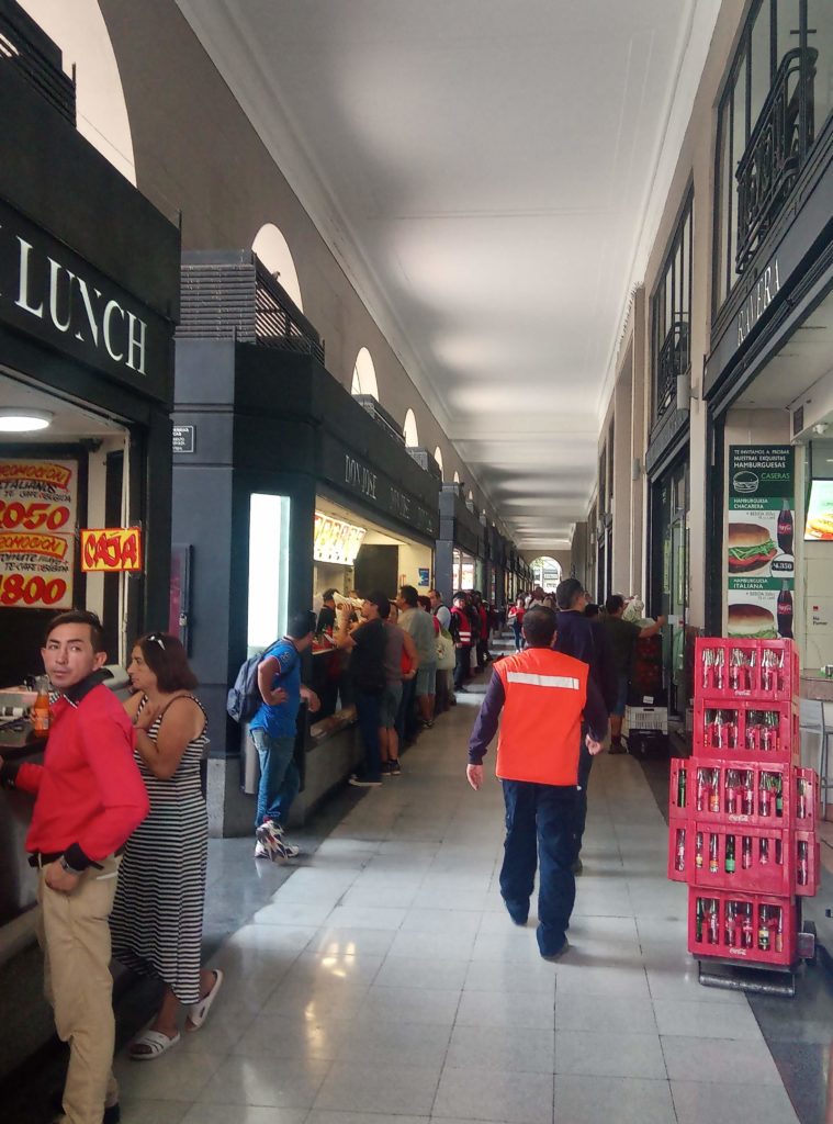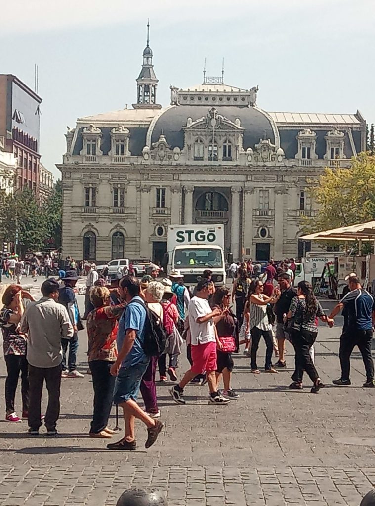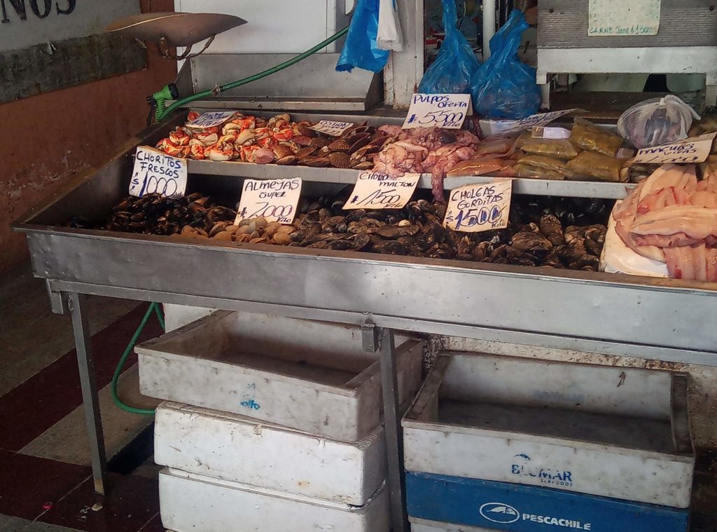 Start war am Staatssitz. Plaza de ConstitucionDer unglückliche erste sozialistische Präsident Allende. Totgebombt von den eigenen Militärs im obigen Präsidentenpalast mit freundlichem Ratschlag und Unterstützung der CIA.Mein Güte, geh weg. Ich will ein Foto machen.Wallstreet Santiago de ChileEin Lokal, das es sich auf die Fahnen geschrieben hat tradtionelle Küche zu bewahren.Eine Offenbarung. Es gibt tatsächlich leckeres Essen in Chile. Die Zusammenstellung aus selbstgemachter Mayonaise, Schweinefleisch und Zwielbeln war einfach lecker.Orgnisierter Schuhpuztshop. Sehr stark frequeuntiert.Schneider und Schilling. Deutscher Einfluss in ChileHot Dog Allee am Plaza de Armas. Heißen hier irgendiwe Completos. Die populärste Variante ist nach den italienischen Landesfarben benannt. Mayoniase, Avocado, KetchupDas hinter dem LKW ist das Postamt, ca. 150 Jahre altShowroom der Hot Dog AlleeDa ich gestern schon auf dem Platz war, mal ein kurzer Abstecher in die Kathedrale. Der Show Room.Hier sollte man ruhig sein. Seitenteil. Hier wird tatsächlich gebetet.Putztag am Plaza del ArmasEine endemische Art in Chile der Palme, ca 350 Jahre alt.In einer der Nebenstraßen des Plaza de Armas gibt es Esoterikbuden. Hier kann man sich die Zukunft voraussagen lassen. Ganz offiziell und besteuert. Wers braucht…………Fischmarkt Santiago de ChileAlle möglichen Arten von Muscheln, auch solche die man definitiv in Europa nicht kennt. Mehr oder weniger frisch aus dem pazifischen Ozean.Keine Ahnung woher das Blau kommt. Marvin? Spielst Du wieder?Die Viecher sind ca. 1 Meter lang. Eine Art Aal.Showroom in der Fischhalle.Metro in Santiago. Ähnliches System wie in Buenos Aires und Rio. Man organisiert eine Karte, lädt diese mit Guthaben auf. legt diese auf ein Lesegerät am Drehkreuz und fäht los. Der Preis ist unabhängig von der Länge. Eine Station oder Zehn. Immer derselbe Preis.In der Metro ist offiziell musizieren verboten. Wird aber doch manchmal gemacht. Offiziell ist nur hier das misizieren erlaubt.Meine Reisebegleitung. Sehr sympathisch.Vega Central Markt in Santigao de ChileCat Content. Davon gab es hier viele. Das Rätsel ist gelöst.Aus dem schwarrzen Mais wird ein Getrünk gemacht. Mal sehen, ob ich das irgendwo bekommen kann.Laut Nikolas der beste Kaffee in Santiago de Chile.Maniok.Beeren gibt es auch und die sind sehr lecker.Einer der Flüße rund um die Stadt mit Sedimenten aus den Anden. Es gibt noch einen anderen, aus dem das Trinkwasser gewonnen wird. Hier gab es eine kleine Konfrontation mit einem Obdachlosen, der offenbar der Meinung war, er müsste Geld bekommen für Fotos, die niemand von ihm gemacht hat.Der laut Nikolas europäischte Teil Santiago de Chiles. Nette Bar, Kaum war Nikolas weg, wurde man nur noch mit dem Arsch angeschaut.