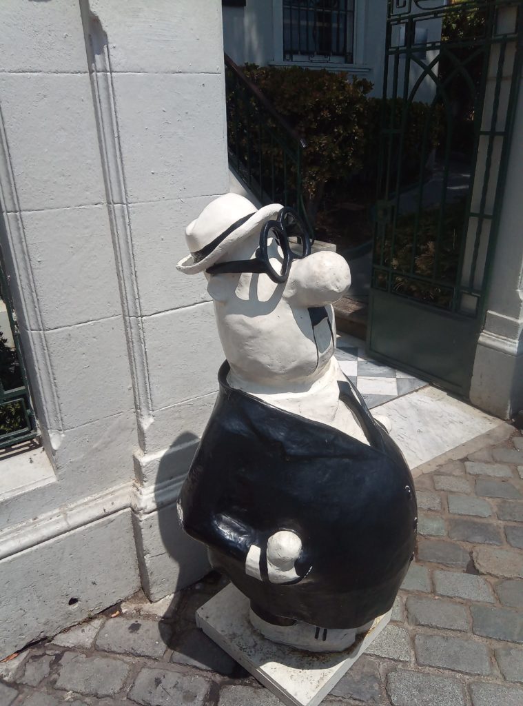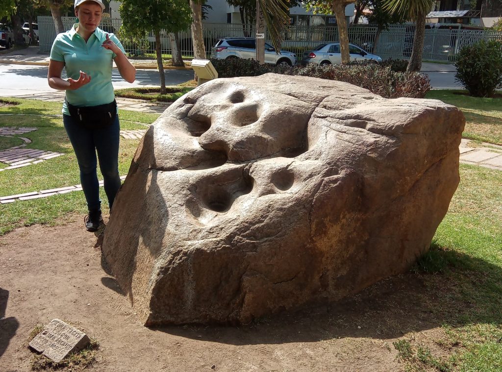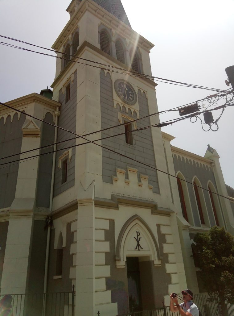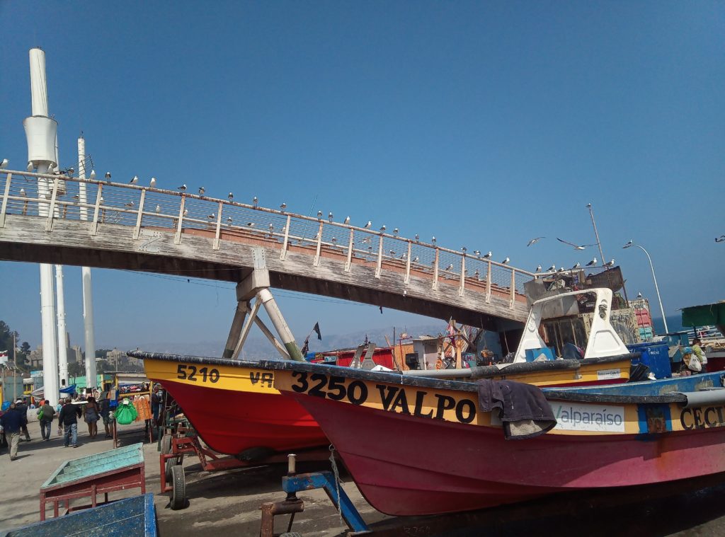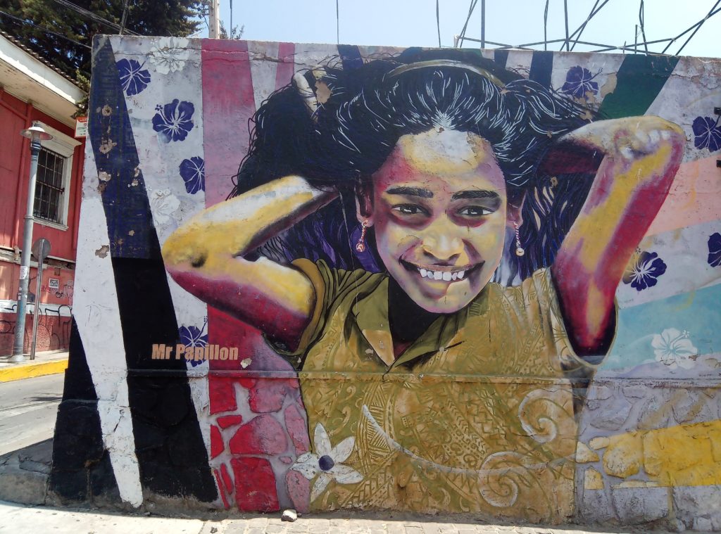 Mein erstes Lama. Ein echtes Lama, es gibt auch Partner/Unterarten.Schwach duftende Blüten auf dem weg nach ValparaisoKurzer Zwischenstop für einen Snack. So kleine Andachststätten gibt es hier überall an den Straßen und HäusernVina del Mar. Die Touristenhochburg in Chile für EinheimischeEin paar schöne alte Häuser gibt es hier. Die Stadt ist noch relativ jung. Sie wurde gegen 1910 von einer reichen Familie aus Spanien gegründet, die im Weinbusiness tätig ist. Daher auch der Name Vina del Mar.Geklaut von den Osterinseln, der ist bestimmt verdammt einsam hier auf dem Festland.Eine Gartenskulptur aus Pflanzen,Unser Tourguide Michelle in vollem Einsatz, mit dabei überwiegend Amerikaner, eine Chinesin, ein Inder und El AlemanPrähistorischer Wasserspeicher.Die Blumenuhr, die jeder mindestens einmal fotografiert haben muss, damit bewiesen ist, dass man in Vina del Mar war.Touristengimmick. Filmfiguren, die für ein Foto rund um Blumenuhr herumlungern. Ich möchte nicht wissen, wie heiß es in diesen Kostümen ist. Mir läuft bei 35 Grad auch so schon das Wasser herunter.Fischmarkt in Valpariso. Möwen, Möwen und noch mehr Möwen.Der Fang ist jetzt wirklich frisch.Meine beiden Kumpels von der Food and Markets Tour von gestern sind auch wieder dabei. Klein ist die Welt.Strandleben auf chilenisch.Ausrüstung für den Leinenfang. Ranjid, geh gefälligst aus dem Bild!Der Schutzpatron der Fischer.Leider nicht so gut zu erkennen, Aber das unter der Brücke sind Seelöwen.Das war richtig beeindruckend, die Grafitti, die es in den kleinen Gassen von Valparaiso zu sehen gibt ist wirklich gut und schön.Mein Liebling Polar, die Kunstwerke sind alle signiert.Valparaiso ist auch ein beliebter Ausflugsort für Kreuzfahrtschiffe.Das sind Darstellungen die die Historie eines chilenischen Eingeborenstamms dokumentieren. Die etwas wir Zirkus anmutenden Köpfe sind aus Walknochen hergestellt worden. Die Bemalung ist auch von dort.Nur Museum – altes Cable Car GetriebeAuch lustig, die JungsBlick über ValparaisoIn betrieb befindliche Cable Car Maschine. Dauert nicht lange. 5 Minuten und man ist unten oder oben. Und nur 100 chilenische Peso teuer.Ah, endlich Essen, Seafood, sehr lecker aber auch teuer.Mein dritter Vorname ist ab jetzt Nachtisch.2 Jungs aus Washinghton DC, ein Paar aus North-Carolina und Ranjid, der in Blockchain macht und mal einen Tag Pause braucht.Dann noch einmal eine Bodega. Die Weinprobe war verglichen mit Argentinien eher lieblos. Und ich muss sagen, mir schmeckt der argentinische Wein auch besser.Das Ambiente war aber schön.Unser kleine Faschingstruppe.Und zurück in Santiago de Chile noch ein bisschen herumlaufen.Das war irgendwie so eine Art Comdey. Mein Spanisch ist leider nicht ausreichend gewesen, um die Witze zu verstehen. Mitten auf dem zentralen Platz, Samstag gegen 21 Uhr.Zeit fürs Bett.
