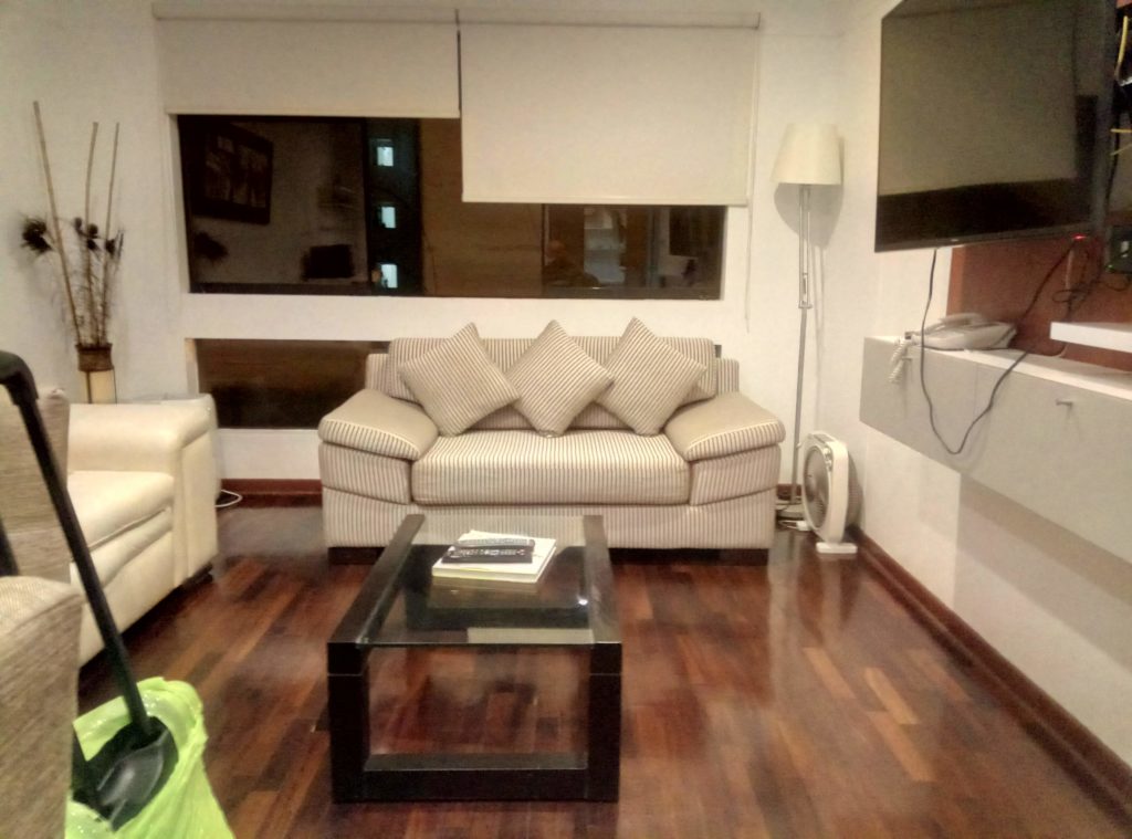 Ich hatte das Apartement in Lima jetzt sehr kurzfristig gebucht. Offenbar fand auch der Vermieter das etwas ungewöhnlich, daher habe ich hier 300 Dollar Kaution hinterlegen müssen. Dafür hat er mich dann in ein größeres, näher zum Pazifischen Ozean gelegenes Apartement gebracht. Sehr schön, und hat wirklich alles was man braucht.