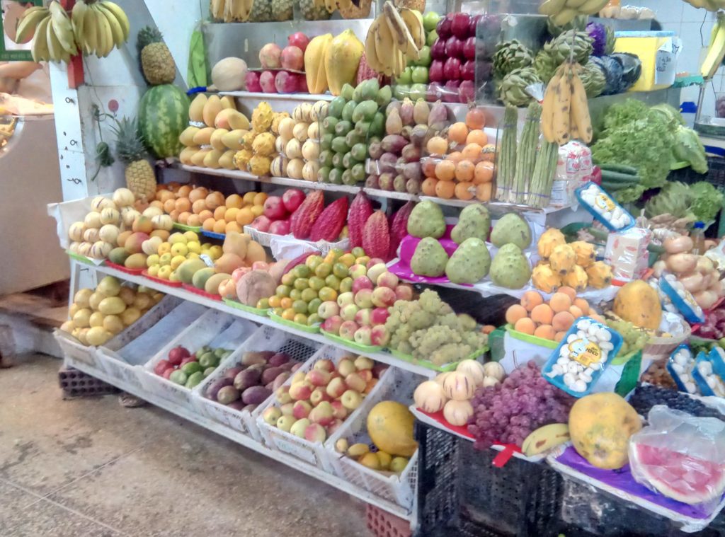 Das Camp war wirklich basic, die Mahlzeiten waren nur dazu da Kalorien aufzufüllen, und die perunanische Küche kann sehr gut sein. Und drumherum gibt es einige Dörfer, die leckeren Fisch und exotische Früchte anbieten. Nada, es gibt Reis, Hühnchen und Bohnen, Melonen und Mangos. Mitgebracht aus Iquitos.