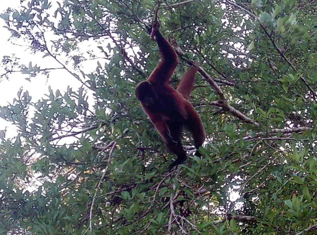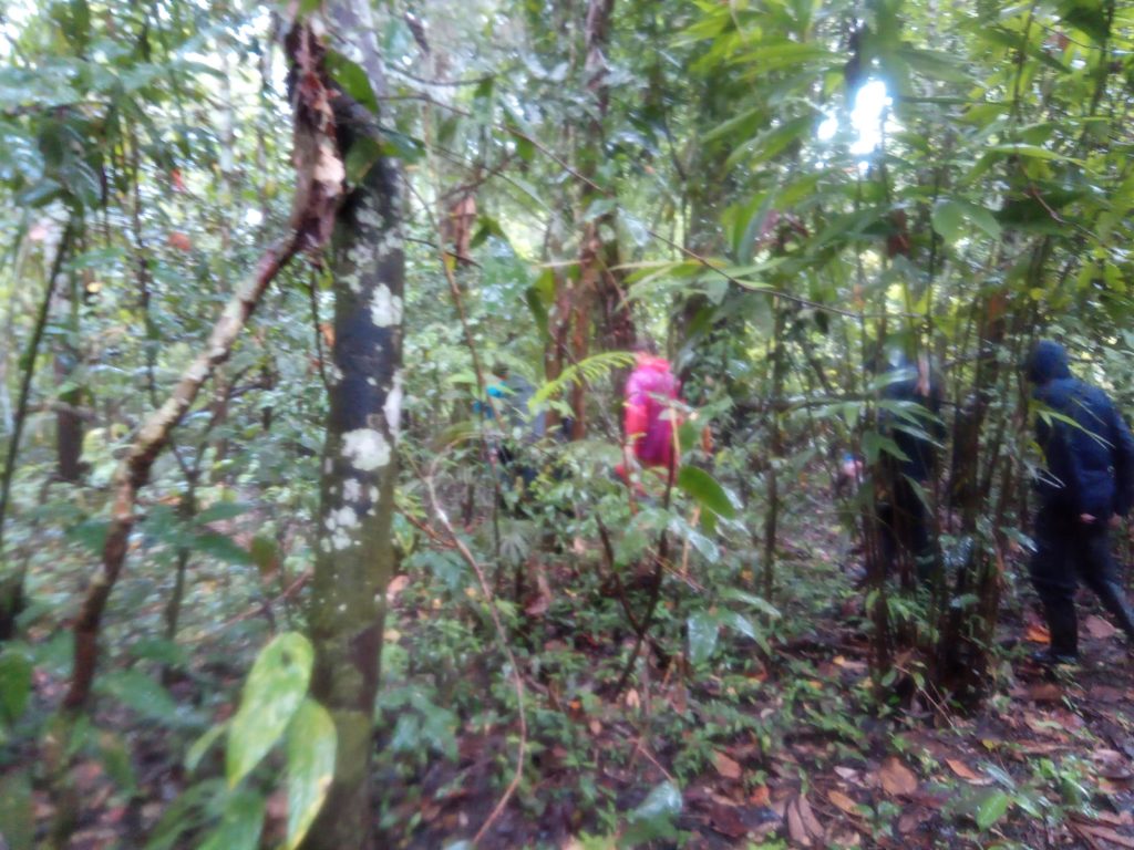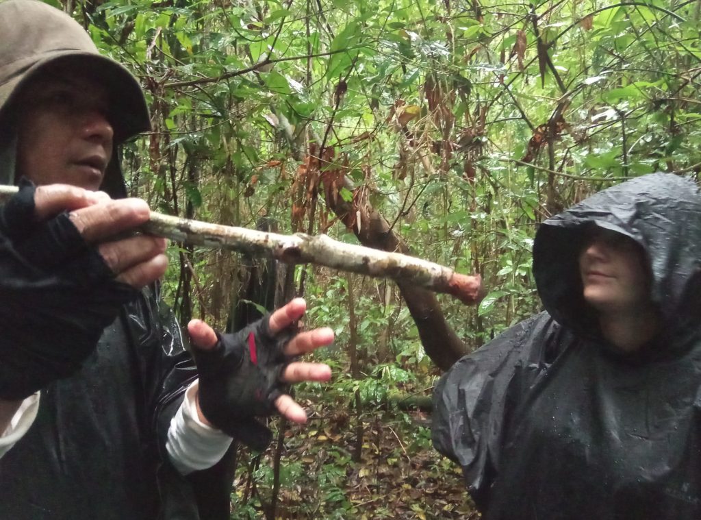 Am zwieten Tag ging es dann auf eine „Dschungeltour“. Auch hier war deutlich zu sehen – hier sind Leute heute und in den letzten Tagen durchgekommen. Unser Lady ist dann mal herzlich von einem was wohl begleitet in ein Wasseloch gefallen? Es fängt mit F an und hört mit F auf. Unser Guides waren auch nicht in der Lage Tiere zu finden, die Tiere die wir gefunden haben, wie etwa einen Ameisenfresser, haben die Leute in der Gruppe gefunden. Auf dem Rückweg hat sich dann der lokale Guide, Juliano, der zusäztlich dabei war, weil sich Edgar, der Mainguide, zwar theoretisch mit Natur auskennt und Englisch kann aber von der Gegend keine Ahnung hat und aus einem Ort 300 Kilometer entfernt stammt, mit dabei war verlaufen. Wir sind dann 30 Minuten in Serpentinen herumgelaufen, bis er wieder eine bekannte Wegmarke gefunden hat.