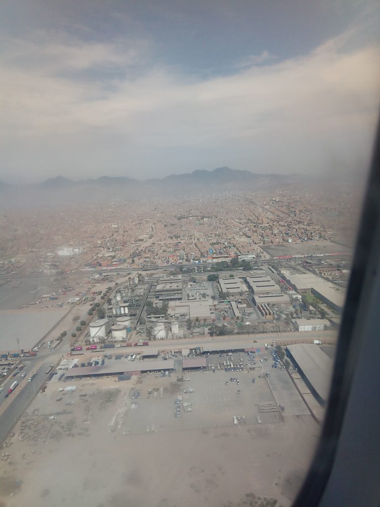 Flughafen Santiago de ChileIst so in 95% der Flughäfen weltweit zu finden.Ein Abschiedsgruß von den OsterinselnDas ist schon Lima – bitte keine Taxis rufen scheint auf den Plakaten zu stehenAus dem Taxifenster, erste EindrückeEs ist hier bewölkt und bei weitem nicht so warm, wie in Santiago de Chile oder Mendoza. Ledilgich 25 Grad, aber die Luftfeuchtigkeit ist deutlich höher.